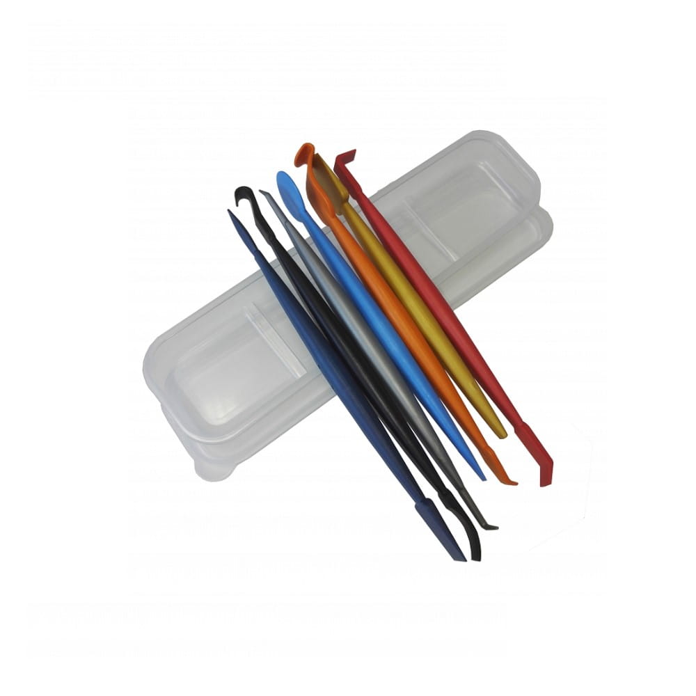 Zestaw patyczków powstał z wytrzymałego tworzywa sztucznego, odpornego na uszkodzenia mechaniczne i działanie środków chemicznych stosowanych w motoryzacji. Specjalnie zaprojektowane końcówki posiadają różne kształty – płaskie, hakowe, łopatkowe czy stożkowe, co znacznie poszerza zakres możliwych zastosowań.