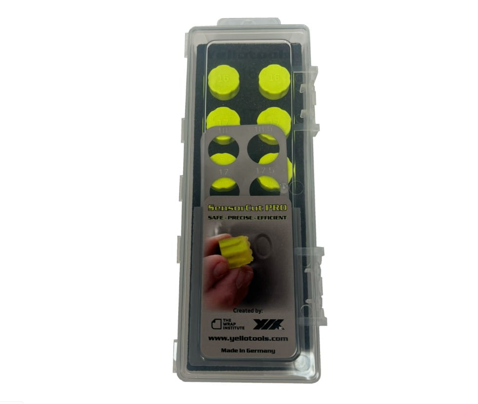 YELLOTOOLS SensorCut Pro to specjalistyczny zestaw przeznaczony dla profesjonalistów zajmujących się car wrappingiem oraz aplikacją folii ochronnych PPF. Narzędzie umożliwia szybkie, precyzyjne i bezpieczne wycinanie folii wokół czujników parkowania, eliminując ryzyko uszkodzenia lakieru czy gumowych uszczelek oraz znacznie skracając czas pracy. Współpraca z The Wrap Institute i XIX3D gwarantuje najwyższe standardy ergonomii oraz efektywności, a szeroki zakres rozmiarów zapewnia kompatybilność z większością czujników występujących w nowoczesnych pojazdach.