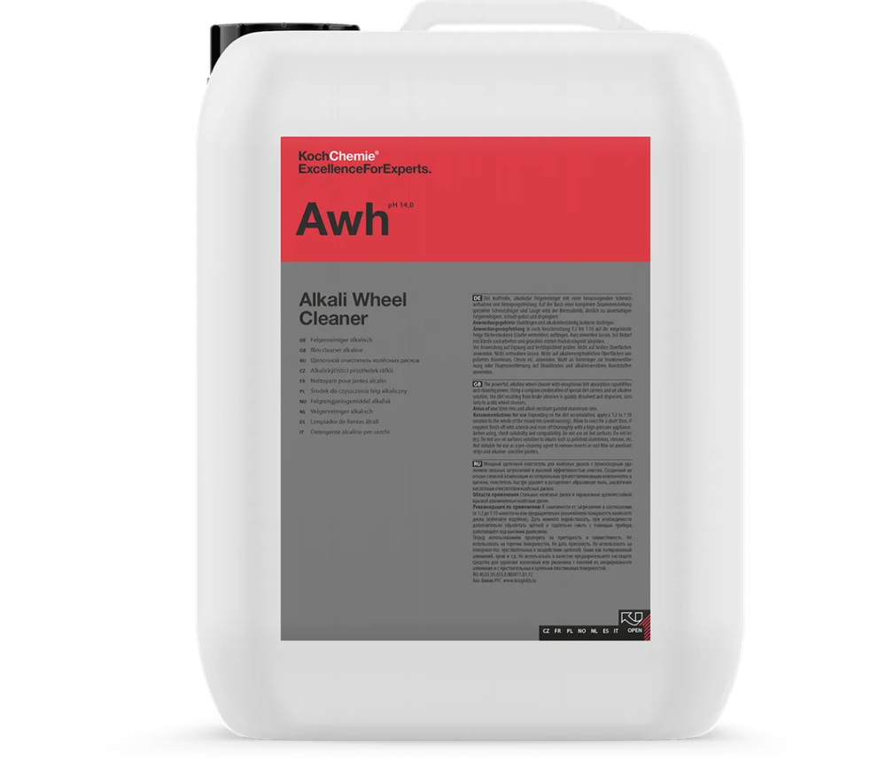cena obniżona:Koch Chemie Alcali Wheel Cleaner – silny, alkaliczny środek do czyszczenia felg o wyjątkowej zdolności pochłaniania brudu i znacznej wydajności. Dzięki kompleksowemu połączeniu specjalnego nośnika utrudniającego ponowne osadzanie się brudu oraz mydliny, ścier z okładzin ciernych klocków hamulcowych jest szybko rozpuszczany i rozdrabniany – tak jak w przypadku kwaśnych środków czyszczących. Dokładnie czyści również obręcz felgi już po pierwszym użyciu. Alkali Wheel Cleaner to słabo pieniący się środek, który został stworzony do skutecznego mycia przy zmniejszonym wytwarzaniu oparów. Jego właściwości umożliwiają delikatne, szybkie i dokładne czyszczenie felg. Ulega szybkiemu oddzieleniu zgodnie z normą ÖNORM 5106.