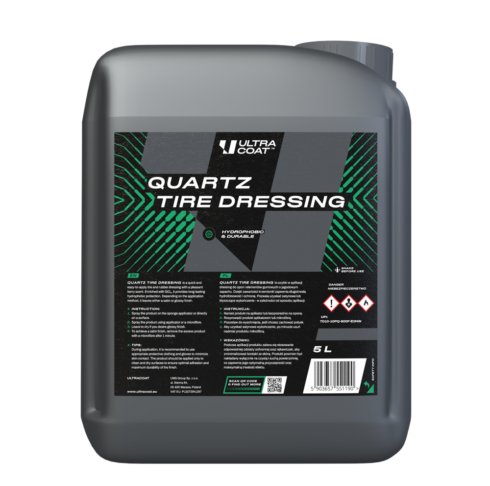 Aplikacja jest banalnie prosta – wystarczy użyć dołączonego atomizera, aby równomiernie rozprowadzić produkt na oponie. Quartz Tire Dressing pozwala również kontrolować efekt końcowy – w zależności od sposobu aplikacji uzyskasz delikatne, satynowe wykończenie lub głęboki, błyszczący połysk.