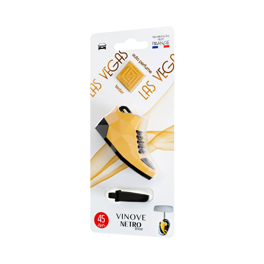 VINOVE NETRO Shoe to designerski zapach samochodowy w formie kultowego buta, który łączy wyjątkowy styl z funkcjonalnością. Idealny do codziennej jazdy i dłuższych podróży, podkreśla charakter wnętrza auta.